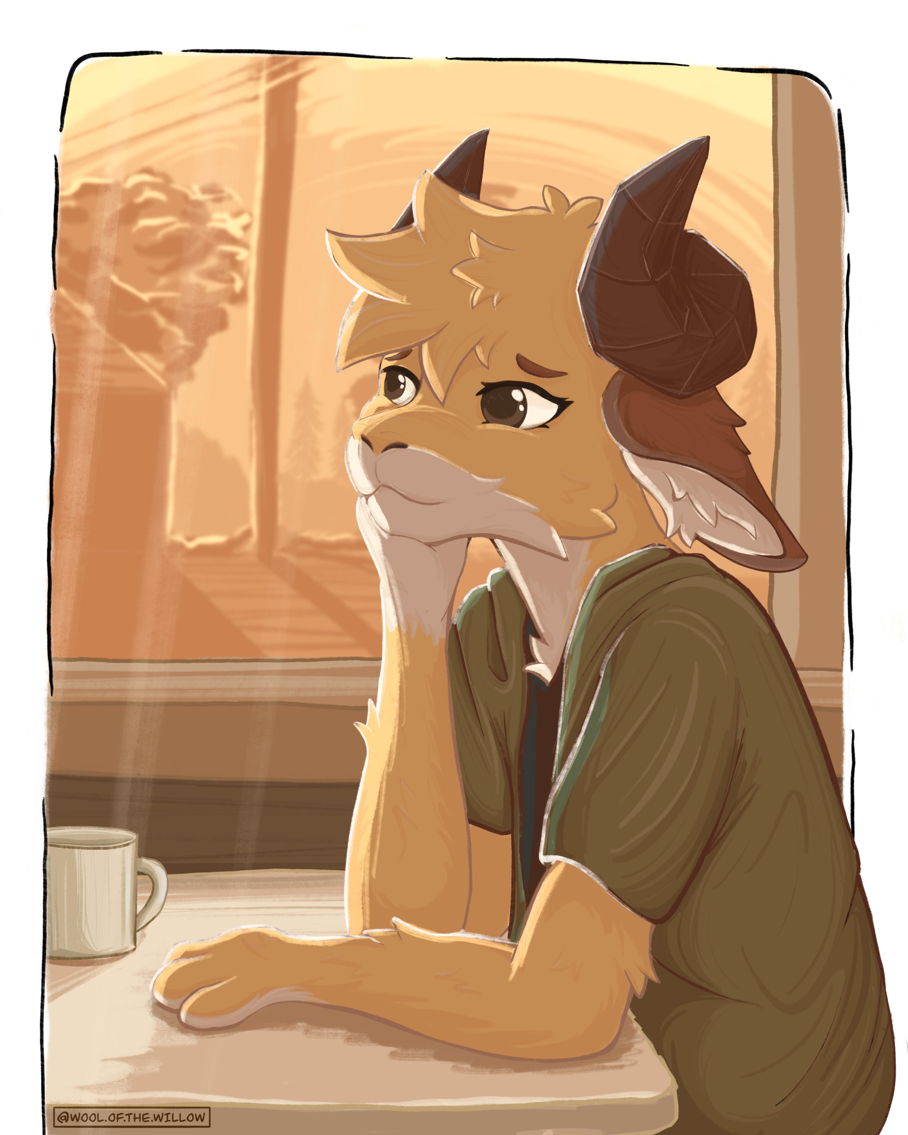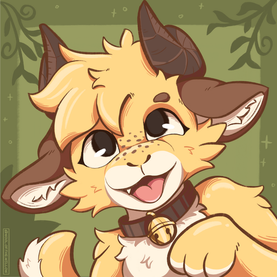 My fursona 'Willow' was inspired by my star sign 'Aries'. He is a golden ram with floppy brown ears and curly horns!
